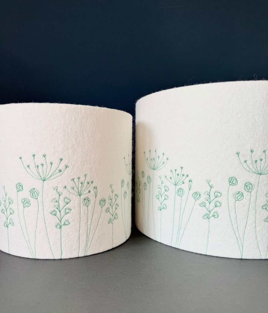 Add a touch of nature-inspired elegance to your home with this handcrafted seed head lampshade. Made with a neutral felt background, each piece is individually created using freehand machine embroidery, bringing the delicate beauty of hedgerow plants to life. Choose your preferred thread color to complement your space, making this a truly unique and personal addition to your décor. Perfect for creating a warm and inviting atmosphere, this bespoke lampshade is a stunning blend of artistry and craftsmanship.